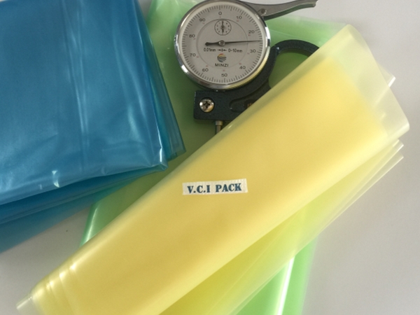 VCI氣相防銹膜(防銹袋)是將高分子聚乙烯樹脂(LDPE)與功能VCI樹脂配比混合,采用現(xiàn)代薄膜共擠技術(shù)生產(chǎn)的新一代復(fù)合防銹薄膜。具有良好的氣化防銹性能、阻隔防潮、使用方便、透明直觀等特點;當(dāng)用塑料袋包裹金屬產(chǎn)品時,氣相緩蝕劑在封閉空間內(nèi)氣化并凝聚在所有金屬表面上形成氣相保護(hù)層,從而防止金屬產(chǎn)品銹蝕。符合GB-T19532-2004防銹性能要求。